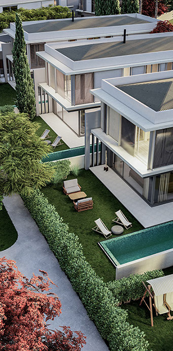 Виллы Terra Doga имеют много особенностей благодаря своим 2-этажным номерам 6+1, просторным и ориентированным на ваши потребности. Все виллы имеют полы с подогревом в стандартной комплектации. Каждая вилла имеет собственную террасу и 1 бассейн.