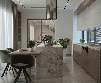 Виллы Terra Doga делятся на 2 типа, так как планы верхних этажей одинаковы, а планы нижних этажей разделены на открытую кухню и закрытую кухню. Тип 1 имеет открытую планировку кухни.