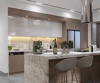 Виллы Terra Doga делятся на 2 типа, так как планы верхних этажей одинаковы, а планы нижних этажей разделены на открытую кухню и закрытую кухню. Тип 1 имеет открытую планировку кухни.